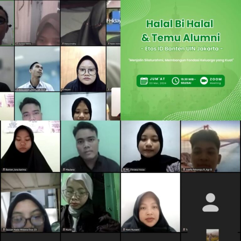 Masih dalam suasana yang kehangatan bulan syawwal, Keluarga Etos ID Wilayah Banten mengadakan Temu Alumni daring pada Jum’at (03/04). Acara tersebut diprakarsai oleh Fasilitator Etos ID Banten yang aktif mengelola program angkatan 2021-2023, Zulfan Hidayat, seorang alumni Etos ID Banten tahun 2018.